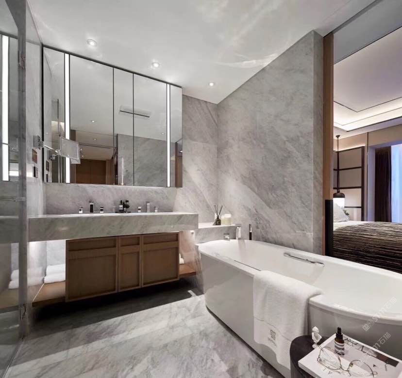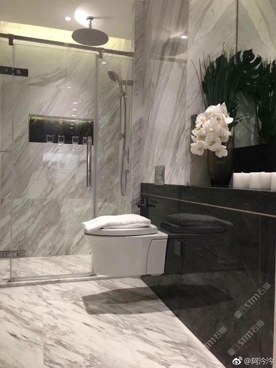 以大理石的天然肌理,雕琢衛(wèi)浴的奢雅格調(diào)。維納斯白的純凈底色,交織著金灰紋路的藝術(shù)韻律,從墻面延伸至地面,每一處鋪貼都是對精致生活的注解。在這一方空間里,大理石的冷冽質(zhì)感與空間的溫馨氛圍碰撞,既顯高級感,又藏?zé)熁饸猓屝l(wèi)浴時光成為一場視覺與感官的雙重奢享。
